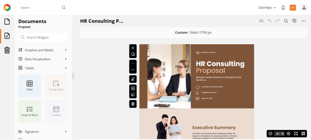 Another interesting tool that makes DocHipo an all-in-one platform for all your business-related content is the interactive Proposal Maker.