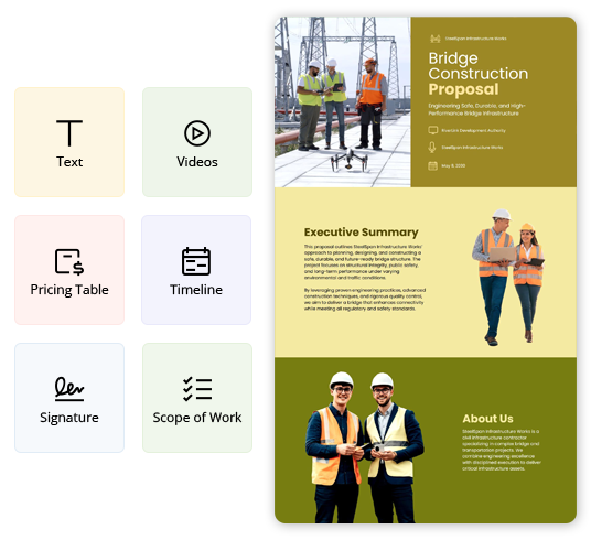 Explore more Construction Proposal template examples designed for different offerings and client needs. Find the right example to match your service type and customize it quickly for your Proposals.