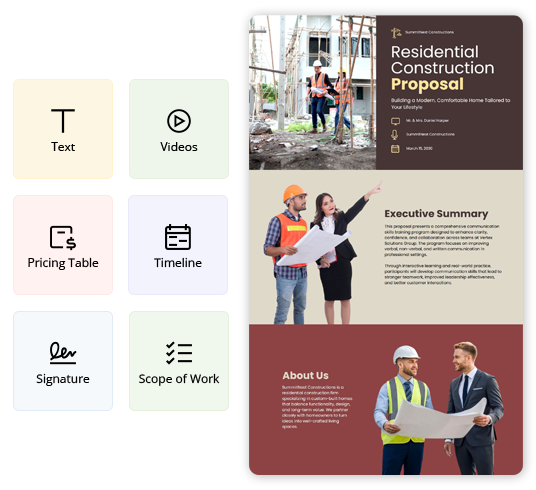 Explore more Construction Proposal template examples designed for different offerings and client needs. Find the right example to match your service type and customize it quickly for your Proposals.