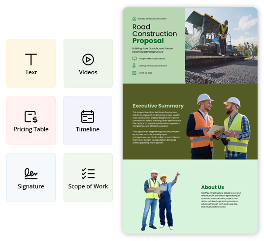 Explore more Construction Proposal template examples designed for different offerings and client needs. Find the right example to match your service type and customize it quickly for your Proposals.