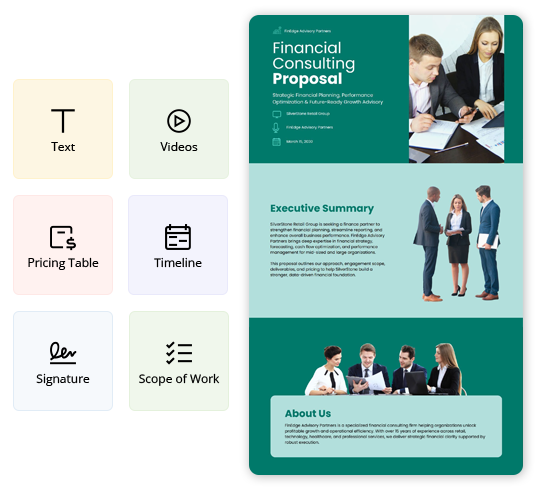 Explore more Consulting Proposal template examples designed for different offerings and client needs. Find the right example to match your service type and customize it quickly for your Proposals.