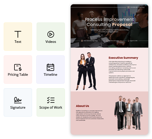 Explore more Consulting Proposal template examples designed for different offerings and client needs. Find the right example to match your service type and customize it quickly for your Proposals.