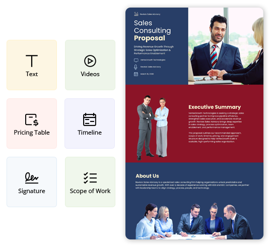 Explore more Consulting Proposal template examples designed for different offerings and client needs. Find the right example to match your service type and customize it quickly for your Proposals.