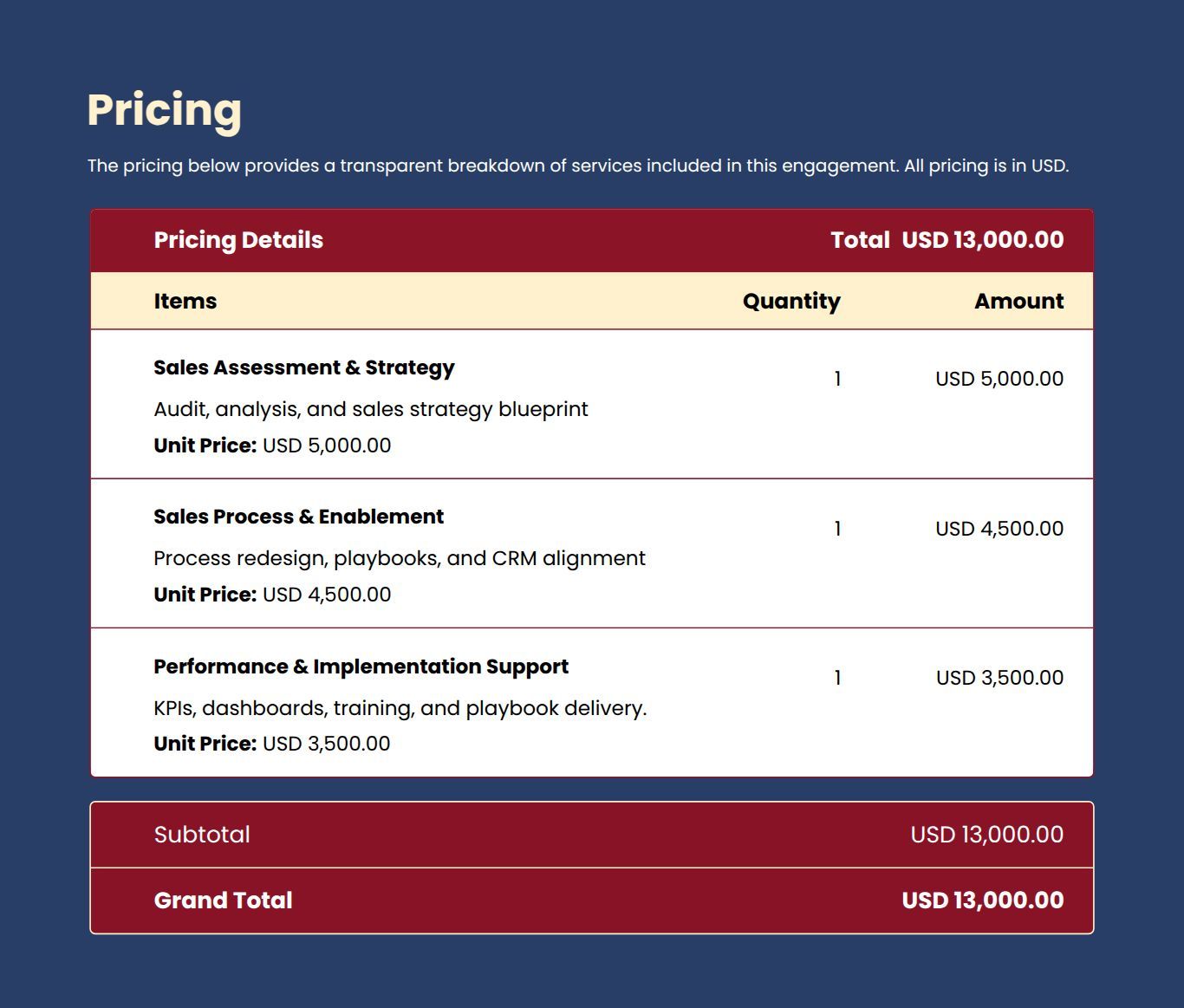Create transparent, flexible pricing that clients can understand and approve without back-and-forth.