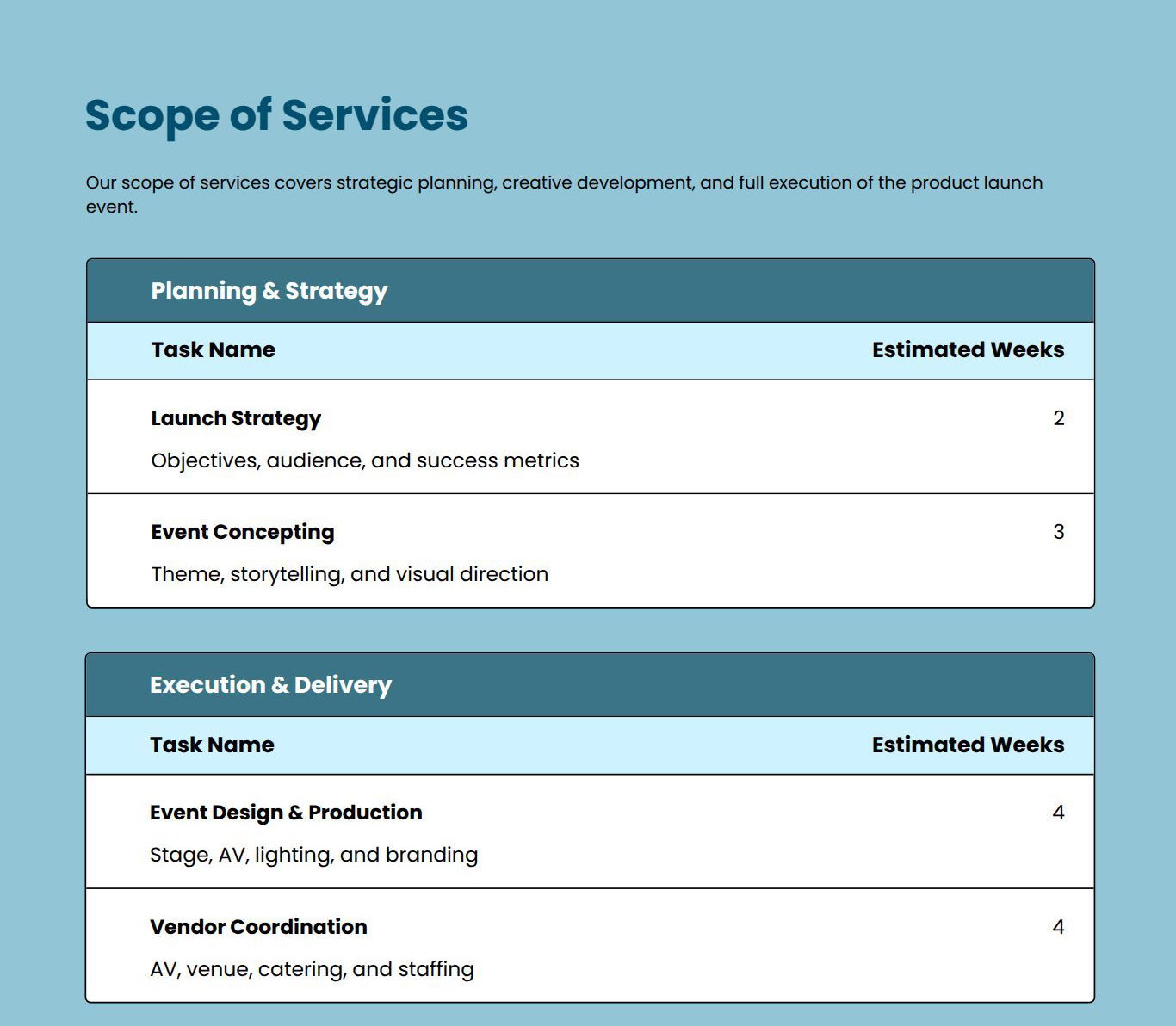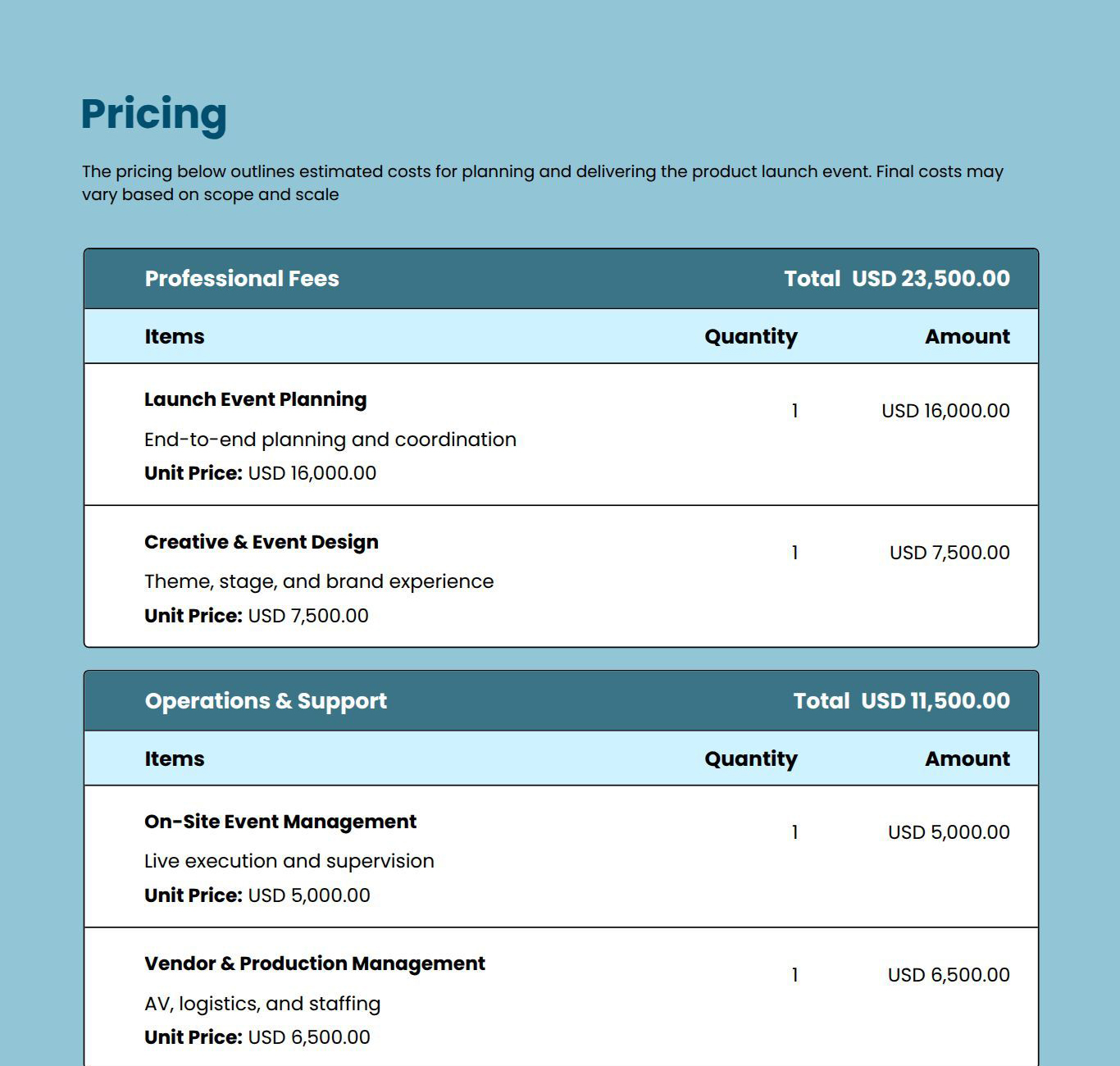 Explore more Events Proposal template examples designed for different offerings and client needs. Find the right example to match your service type and customize it quickly for your Proposals.