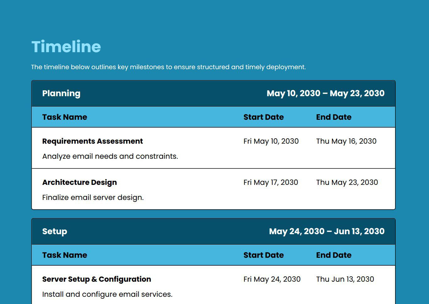 Use this email server setup proposal template to create professional proposals for email infrastructure projects. It helps you define setup requirements, security scope, configuration approach, timelines, and pricing clearly. Customize sections to align with client IT needs.