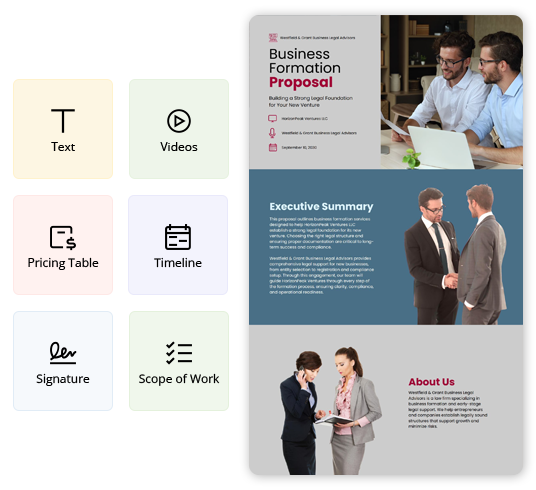Explore more Legal Proposal template examples designed for different offerings and client needs. Find the right example to match your service type and customize it quickly for your Proposals.