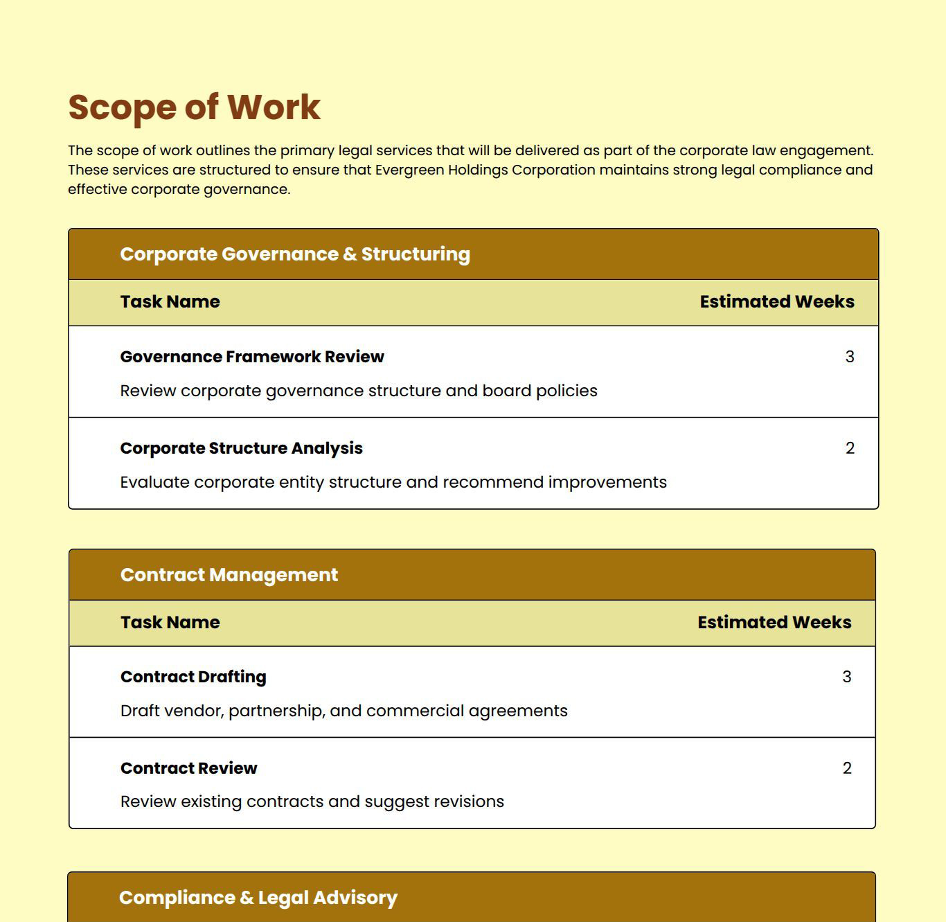 Absolutely. You can adapt it for governance, compliance, M&A, or advisory services.