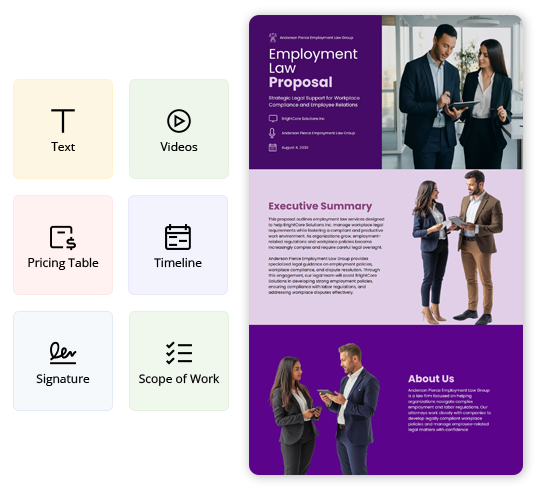 Explore more Legal Proposal template examples designed for different offerings and client needs. Find the right example to match your service type and customize it quickly for your Proposals.