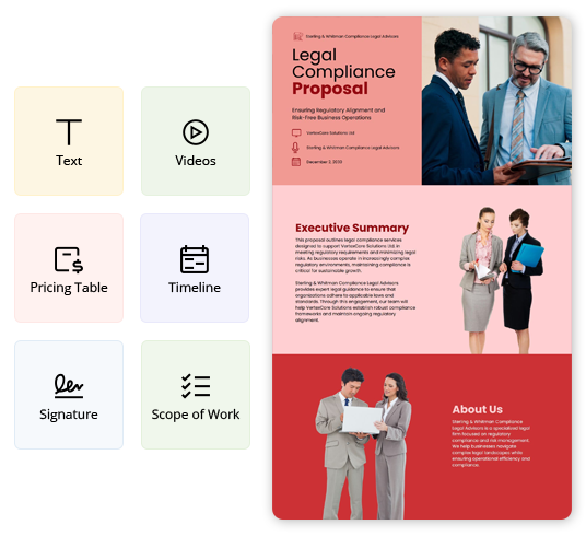 Explore more Legal Proposal template examples designed for different offerings and client needs. Find the right example to match your service type and customize it quickly for your Proposals.
