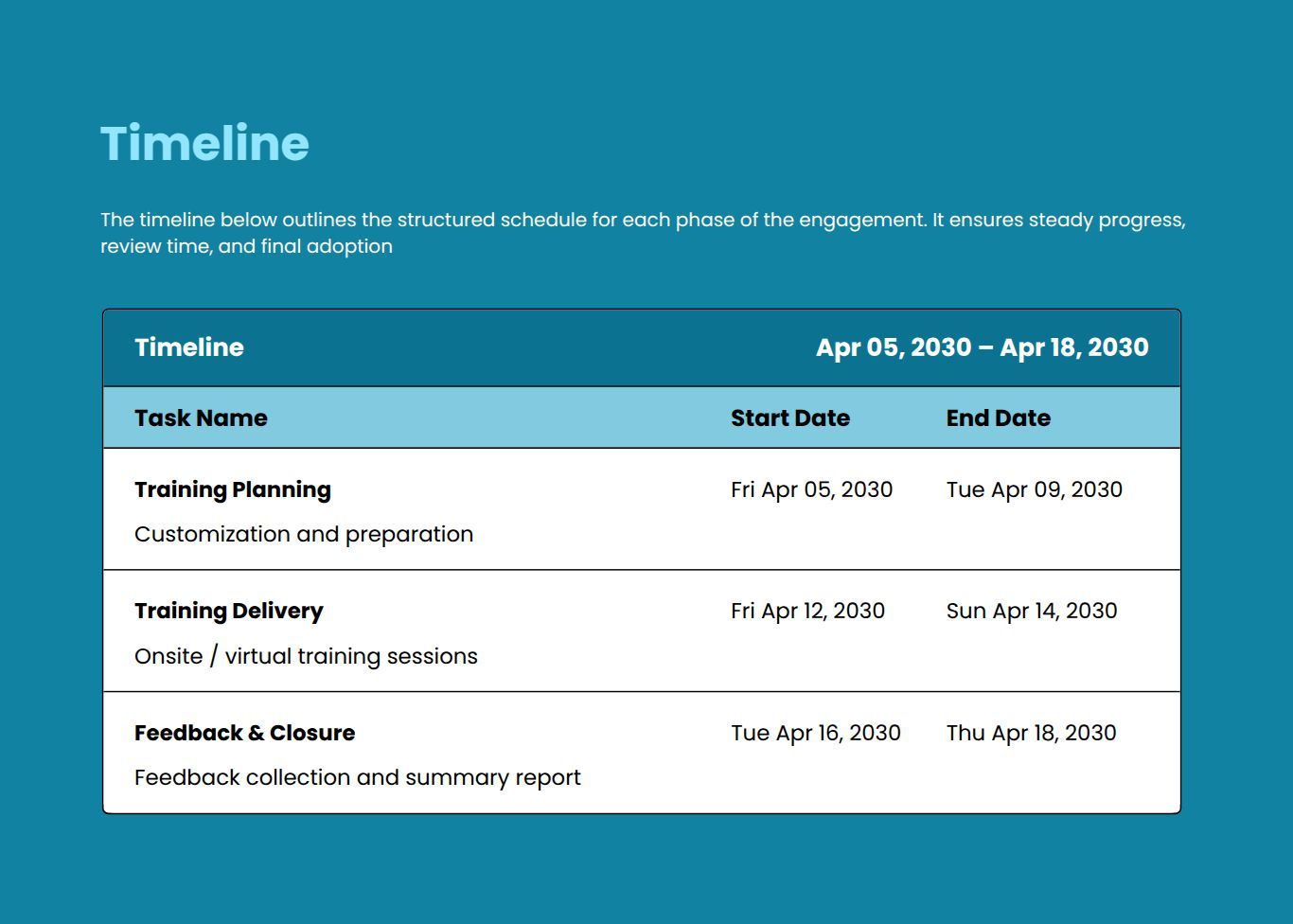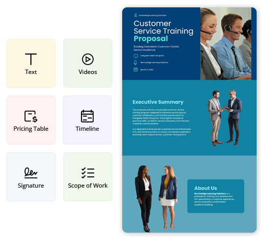 Explore more Training Proposal template examples designed for different offerings and client needs. Find the right example to match your service type and customize it quickly for your Proposals.