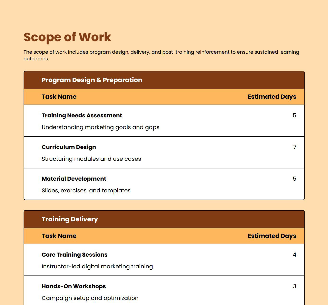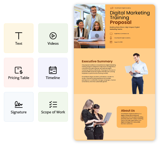 Explore more Training Proposal template examples designed for different offerings and client needs. Find the right example to match your service type and customize it quickly for your Proposals.