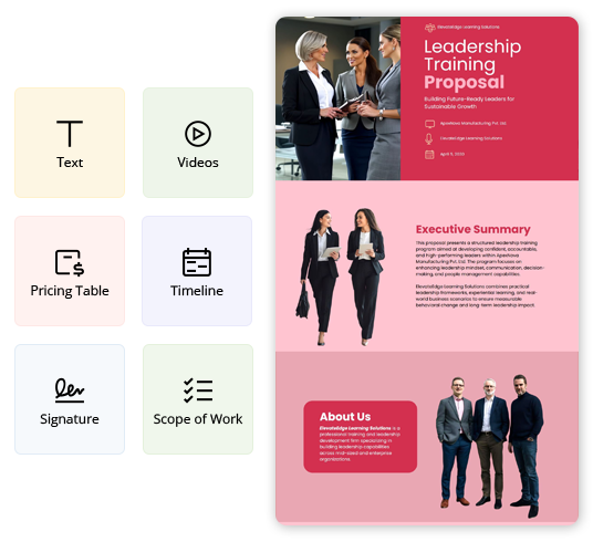 Explore more Training Proposal template examples designed for different offerings and client needs. Find the right example to match your service type and customize it quickly for your Proposals.